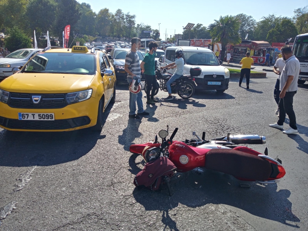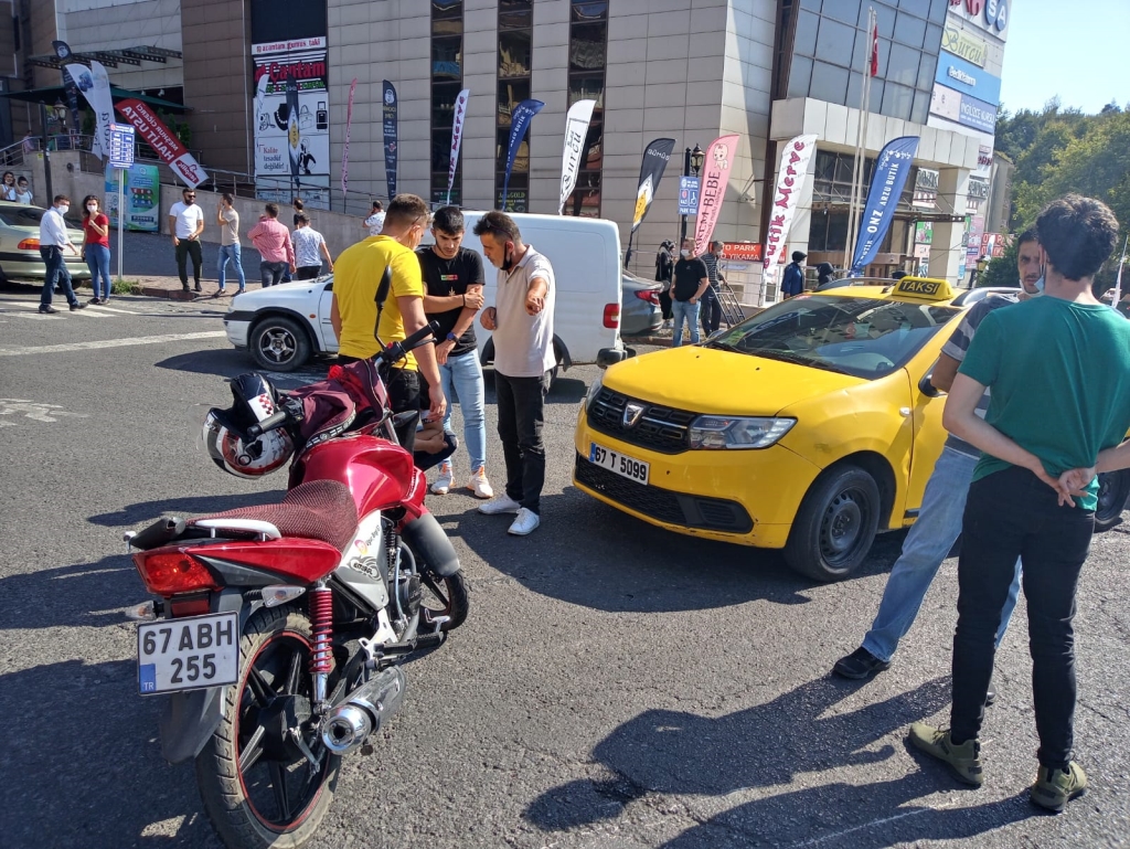 Alınan bilgiye göre kaza, saat 16.00 sıralarında Ereğli ilçesi Aycity Avm önünde meydana geldi. İddiaya göre, 67 ABH 255 plakalı motosikletin sürücüsü U.B, 67 T 5099 plakalı ticari araç sürücüsü M.O. idaresindeki araca çarpmamak için manevra yaptı. Yaptığı manevra sonrasında sürücüsünün direksiyon hâkimiyetini kaybettiği motosiklet devrilerek kaymaya başladı. Kazayı gören vatandaşlar sağlık ekiplerine haber verirken, kısa sürede olay yerine gelen 112 ekipleri yaralı sürücü U.B ve yolcusu T.K’ya ilk müdahaleyi olay yerinde yaparak Özel Echomar Hastanesine kaldırdı. Yaralıların sağlık durumlarının iyi olduğu öğrenildi.