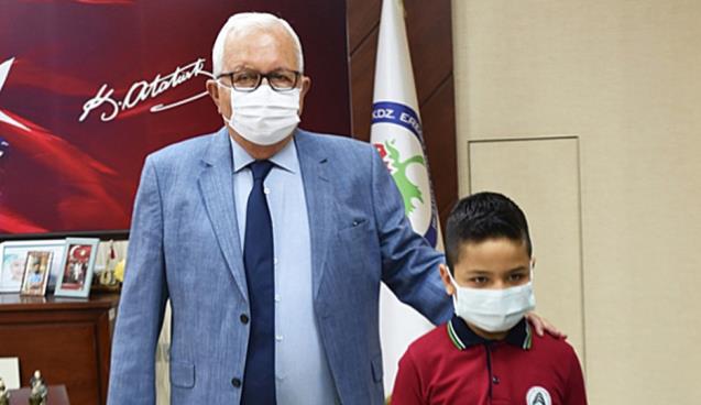 Okul Müdürü Osman Özatan ve öğretmeni Sultan Çivici ile birlikte makama gelen İsmail Eymen Göksel, Başkan Posbıyık’a çiçek takdiminin ardından koltuğa oturdu. Göksel, ilk demecinde “Ulusal Egemenlik ve Çocuk Bayramı’nı bizlere armağan ettiği için Atatürk’e çok teşekkür ediyorum. Hepinizin bayramını kutluyorum” dedi.