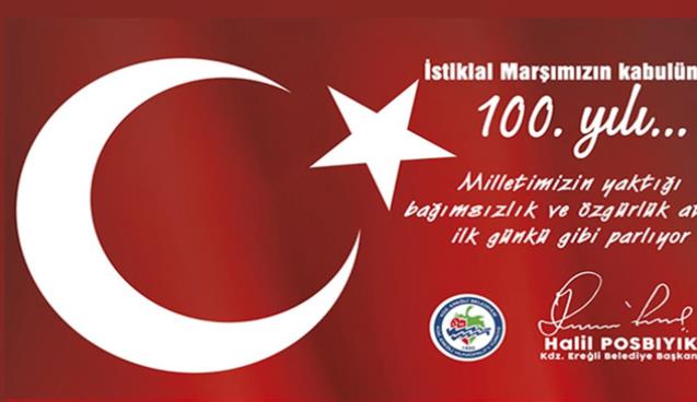 İstiklal Marşımızın kabulünün 100. yılında, büyük önderimiz Mustafa Kemal Atatürk ve mücadele arkadaşlarını, ülkesi uğruna canını ortaya koyan gazi ve şehitlerimizi, marşımızın sözlerini yazan Mehmet Akif Ersoy’u saygı, minnet ve rahmetle anıyorum.”