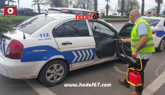 Zonguldak’ın Ereğli ilçesi Sahil Taksi esnafı polis ekip araçlarını dezenfekte etti.