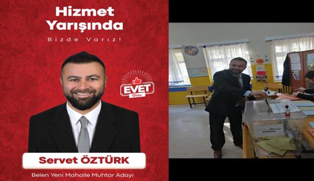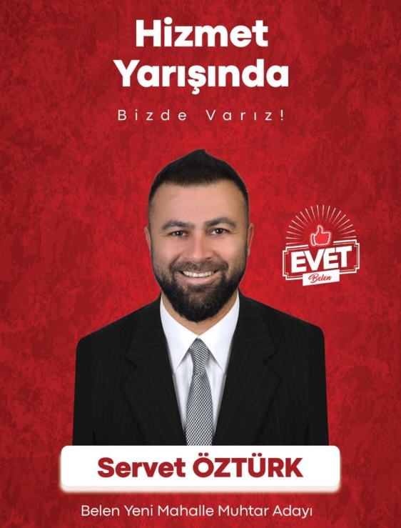 Alınan karar sonrasında Mahallenin genç isimlerinden Servet Öztürk muhtar adaylığını açıkladı. Genç ve dinamik, halkla iç içe olan, bugüne kadar yaptığı Sosyal sorumluluk projeleri ile de adından sıkça söz ettiren Servet Öztürk, göreve talip olduğunu yayınladığı yazılı mesaj ile açıkladı.