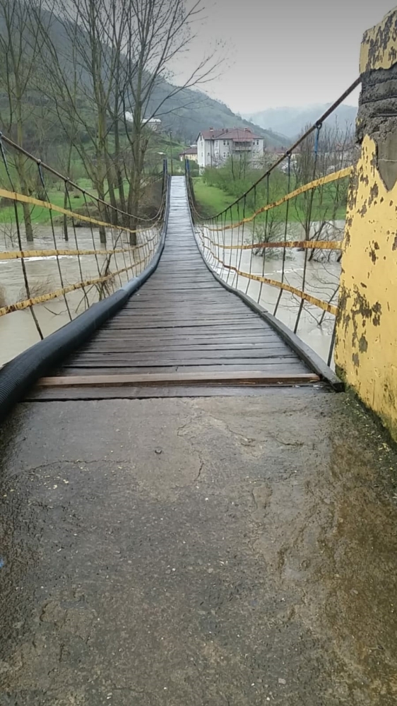 Edinilen bilgiye göre, güzergahtaki Yaraşlıyörük Köyü civarında su seviyesi yükselen Gülüç Irmağı, dere üzerinde yaya geçişi için oluşturulan asma köprü seviyesine kadar yükseldi.