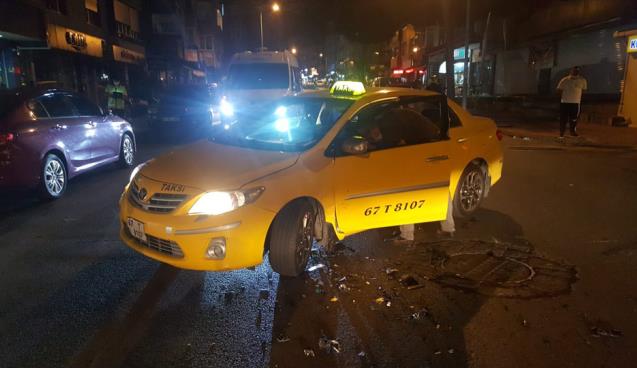 Kaza saat 22.40 sularında ERDEMİR Caddesi Kent Taksi önünde meydana geldi. İddiaya göre 67 LG 165 plakalı motosiklet sürücüsü Engin E. Kent Taksi durağından çıkan Tuncay Y. 67 T 8107 plakalı ticari taksiye çarptı. Kazada motosiklet sürücüsü Engin E. Yaralanırken, motorda yolcu olarak bulunan bir kişinin ise kazadan sonra kaçtığı iddia edildi. Yaralı sürücü olay yerinde sağlık ekiplerinin ilk müdahalesinin ardından Özel Echomar hastanesine kaldırıldı. Sürücünün Sağlık durumunun iyi olduğu ve hayati tehlikesinin bulunmadığı öğrenildi. Diğer yandan kazadan sonra kaçan 14 yaşında ki Mehmet Şahin A. ise daha sonra ağrılarının başlaması nedeniyle Özel Echomar Hastanesine geldiği öğrenildi. Mehmet Şahin A.’nın da tedavisine başlandığı öğrenildi. Ticari taksi sürücüsü Tuncay Y. Motosiklet sürücüsünün motosikleti yatırdığını ve motosikletin kayarak aracına çarptığını söyledi.