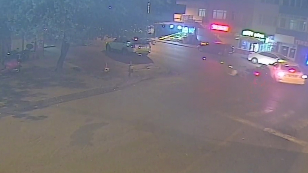 Diğer yandan yaşanan kaza anı güvenlik kameralarına yansıdı. Görüntülerde duraktan çıkan Tunca Y. İdaresinde ki 67 T 8107 plakalı ticari taksiye kayarak gelen motosikletin çarptığı görülüyor.