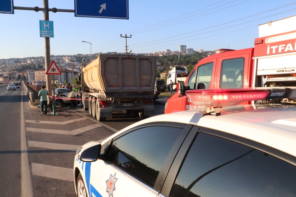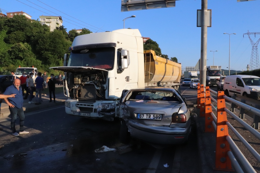 Kaza 19.15 sularında Elmatepe Mahallesi yeni köprü girişinde meydana geldi. İddiaya göre Ercan Koşma’nın (39) kullandığı 67 TR 589 plakalı otomobil ile Armağan Karaca’nın kullandığı 81 AAB 204 çekici, 81 KH 827 dorse plakalı TIR çarpıştı. Kazada sürücü Ercan Koşma ile aynı araçta bulunan Doğukan Koşma (21) ve 5 yaşında ki Doruk Çakır yaralandı. Yaralılar olay yerine gelen sağlık ekiplerinin ilk müdahalesinin ardından Özel Echomar hastanesi ve devlet hastanesine kaldırılarak tedavi altına alındı. Yaralıların sağlık durumlarının iyi olduğu öğrenildi.