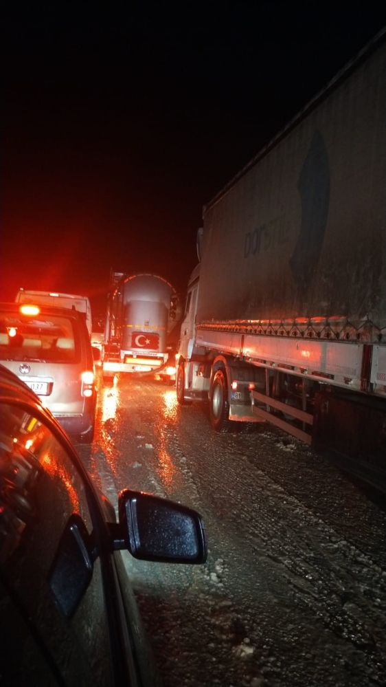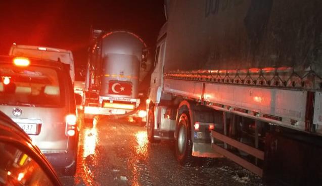 TIR'lar trafiğin kilitlenmesine neden oldu