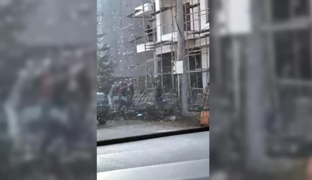 Bolu'da malzemelerin taşınması konusunda anlaşmazlık yaşayan inşaat işçileri ellerine geçirdikleri tahta ve küreklerle birbirine saldırdı. 2 işçinin yaralandığı kavga anı kameralara yansıdı.