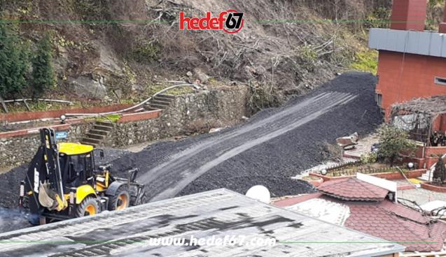 TERMİNALDEKİ HEYELANIN ÖNÜNE SET ÇEKİLİYOR