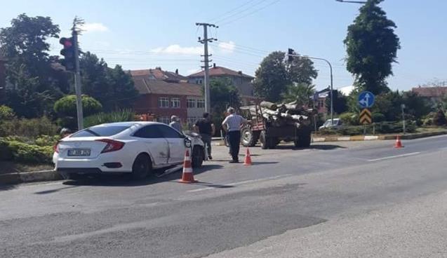 Alınan bilgiye göre kaza, öğle saatlerinde Çaydeğirmeni Beldesi ışıklarda meydana geldi. İddiaya göre, sürücülerinin kontrolünden çıkan otomobil ve traktör çarpıştı. Meydana gelen kazada şans eseri yaralanan olmazken araçlarda maddi hasar oluştu.