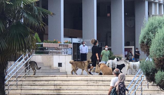 Zonguldak’ta yaklaşık 10 sokak köpeği Valilik binası önünde birbirine girdi. Sokak hayvanları vatandaşların müdehale etmesiyle ayrıldı.