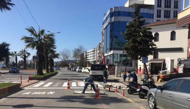 Zonguldak’ın Ereğli İlçesindeki ulaşım yollarında bulunan yaya geçiş yerlerinin çizgileri yeniden düzenleniyor.
