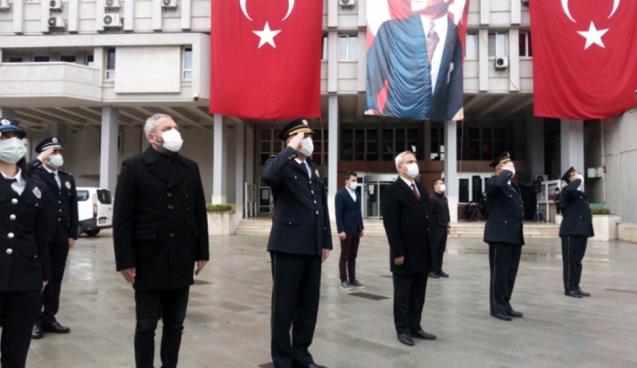 Valilik önünde Pandemiden dolayı sade olarak gerçekleştirilen törene; İl Emniyet Müdürü Ahmet Metin Turanlı, Emniyet Müdür yardımcıları ile az sayıda polis memuru katıldı.