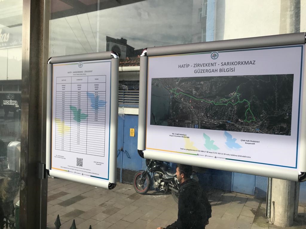 Kdz Ereğli Belediyesi Ulaştırma Hizmetleri Müdürlüğü, Özel Halk Otobüsü geçiş saatleri ile güzergah bilgilerini durakta ilan etme çalışmalarına başladı.