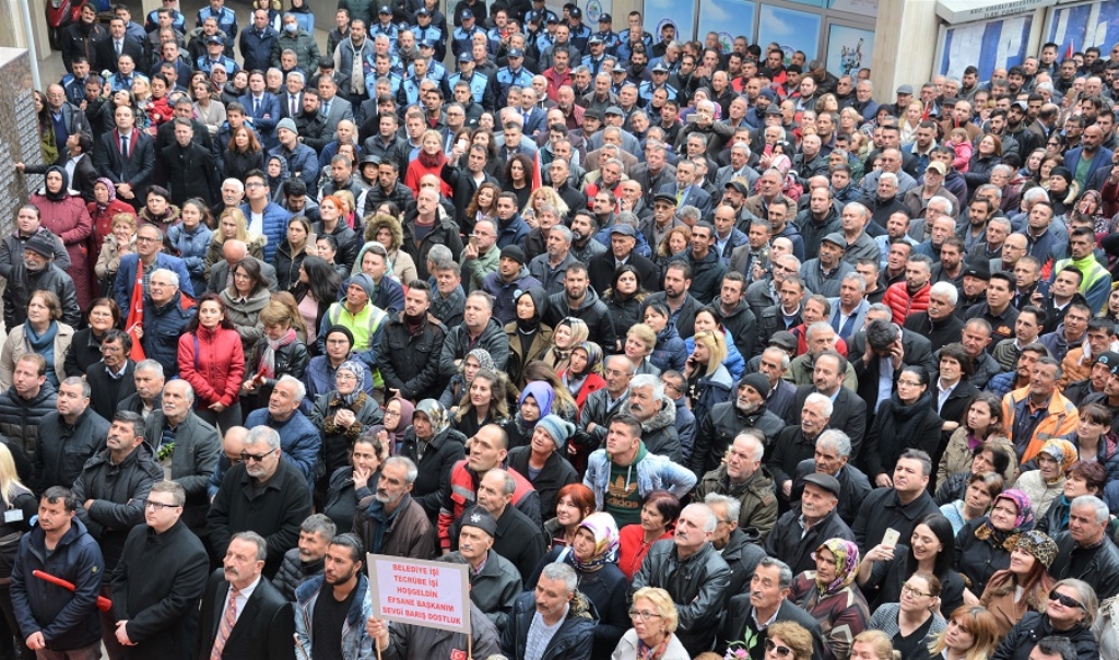 BELEDİYE ÖNÜNDE MAHŞERİ KALABALIK