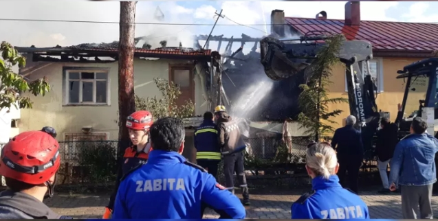 Bolu’da, 2 ev ve 1 depo çıkan yangında kullanılamaz hale geldi. Yangının daha fazla yayılmasını önlemek amacıyla evlerden biri iş makinesiyle yıkıldı. Yangın, saat 18.00 sıralarında Çıkınlar Mahallesi Çıkınlar Caddesi’nde çıktı. Cadde üzerindeki depoda bulunan çöpler, bilinmeyen nedenle yanmaya başladı. Kısa sürede büyüyen alevler bitişikteki 2 katlı 2 eve sıçradı. Çevredekilerin ihbarı üzerine olay yerine itfaiye ve polis ekipleri sevk edildi. Yangını fark eden vatandaşlar tarafından yanan evdeki biri yatalak olan yaşlı çift dışarıya çıkarıldı. Adrese gelen itfaiye ekipleri tarafından alevlere müdahale edildi. Yangının yakındaki evlere sıçramaması için bitişikteki evlerden biri iş makinesi ile yıkıldı. Yangın itfaiye ekipleri tarafından kontrol altına alınırken, olayda 1 depo ve 2 ev kullanılmaz hale geldi.