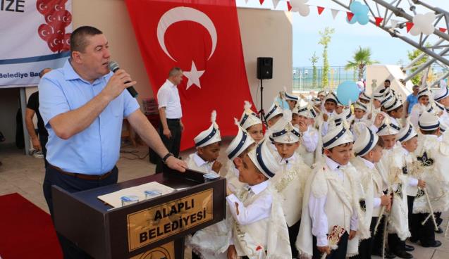 Belediye binası önünde bir süre eğlenen sünnet çocukları, daha sonra Alaplı Belediyesi önünden başlayarak, Amfi tiyatroda sona eren kortejle birlikte Alaplı’da şehir turu arttılar. Korteje, Alaplı Kaymakamı Saim Eskioğlu, Belediye Başkanımız Sayın Nuri Tekin ve eşleri Aysel Tekin, CHP Zonguldak Milletvekilleri Av. Ünal Demirtaş ve Deniz Yavuzyılmaz, Siyasi Partilerini Başkan ve Yöneticileri, Sivil Toplum Örgütlerinin Başkan ve Yöneticileri, Belediye Meclis Üyeleri ve çok sayıda davetli katıldı. Sahil Ailepark Amfi Tiyatroda Saygı Duruşu ve İstiklal Marşı’nın okunması, Kuran-ı Kerim tilavetiyle devam eden Sünnet Şöleni programında konuşan Belediye Başkanı Nuri Tekin, etkinliğe katılanlara teşekkür ederek, “Çocuklarımız erkekliğe ilk adımı atıyorlar, Allah onların damatlığını da göstersin. İnşallah bu gençlerimiz, vatana, millete, Cumhuriyet ve Atatürk ilkelerine yakışır bir biçimde yetişirler. Allah çocuklarımızın yolunu açık etsin. Bu sıcak havaya rağmen katılımlarınızdan dolayı hepinize teşekkür ediyorum ” dedi.