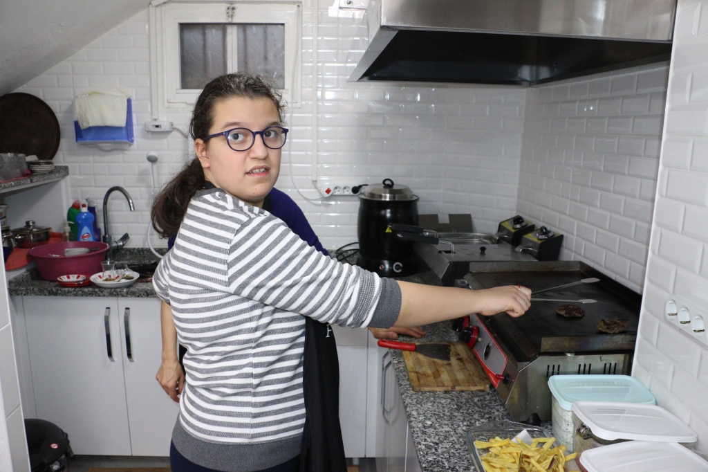 Merve Kılıç’ın annesi Hülya Kılıç ise iş yerini açtıktan sonra kızının daha fazla güven kazandığını, işlerinde de kendisine hafif de olsa yarımının dokunduğunu kaydetti. Anne Kılıç konuşmasında “Kızımın en azından hafif de olsa bana katkısı oluyor. Kızım genelde patates getiriyor sonra soğan getiriyor o tür işlerde ufak tefek şeylere girişiyor yani. Yoğurma yönünde bazen elini şöyle bir dokundurmaya çalışıyor çünkü ete dokunma huyu yoktur. İstiyorum ki kızım daha çok sosyalleşsin bu yüzden böyle bir çalışma girişiminde bulundum. Çocuğumuz için bu yaptığımız davranış gibi diğer ailelerde örnek alarak bu çocuklar için bir örnek görünür diye bir öncülük yapalım dedik. Yüzme, biliyorsunuz ki çocuklarda beyin gelişiminde çok faydalı bir spor olarak en etkili kasların yoğun harekete geçtiği spor dalıdır. Bu yüzden yüzme ihtisas kulübünü istememizin sebebi bu. Hem beyin hem bedensel olarak çocukların gelişimine faydası olacağını bildiğimiz için onu düşünüyoruz. Ama inşallah büyüklerimiz ve gerekli mevkiiler bizi duyarlar diyeceklerimiz bu kadar destek ve onaylarınızı bekliyoruz, tabi sadece bu tür istekler için değil, diğer yönlerde de lezzetlerimizi tatmalarını istiyoruz. Kapımız her daim açık.”