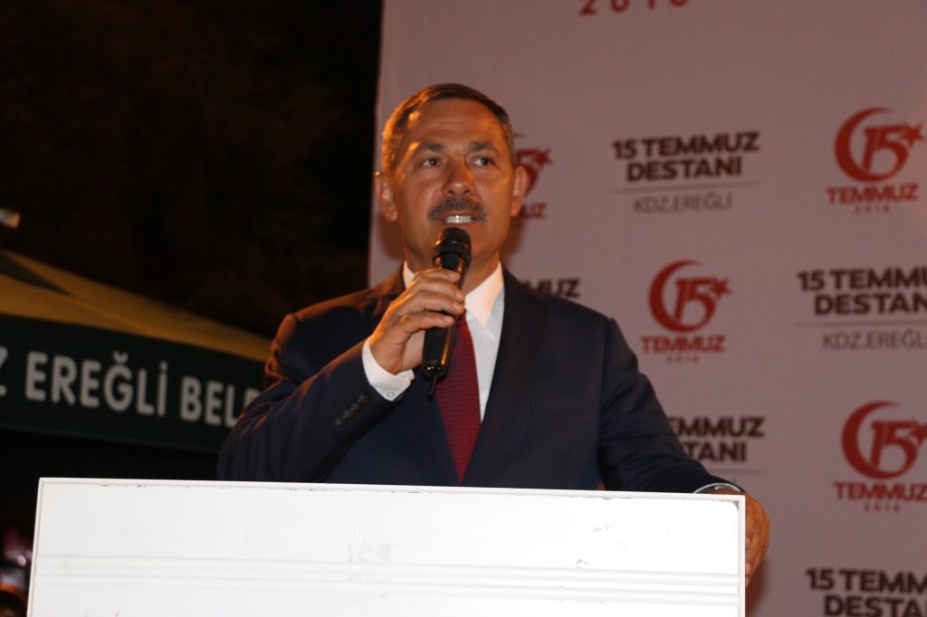 Zonguldak Ereğli’de 15 Temmuz Şehitlerini Anma, Demokrasi ve Milli Birlik Günü dolayısıyla düzenlenecek etkinliklerin programı Atatürk Anıtı’nda geçekleştiriliyor.