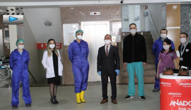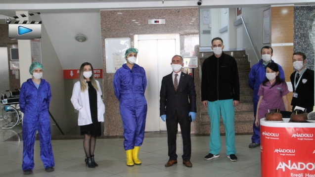 Doğum gününde taburcu olan İsmail Çetin’e eşi, iş arkadaşları, Ereğlili iş adamları Firuz Yılmaz, İlkay Özcan ve Kimsesiz Ömer ve hastane çalışanları tarafından 3 ayrı pasta kesildi. Pasta kesiminin ardından açıklamada bulunan İsmail Çetin “Bir gribal enfeksiyon vücutta bir kırgınlık oluştu. Bunun üzerine hastaneye başvurdum. Hastane çalışanları o kadar temkinliler ki, son günlerde ki Koronavirüs ile ilgili, inanın polis baskını olsa böyle gözaltına alınırdım. Başta çok kızmıştım. Ben kendimi biliyordum. Ancak hastane çalışanlarının bu dikkati çok etkiledi. Beni 15 dakika içerisinde tetkiklerimi yapıp odama aldılar. Benimle çok iyi ilgilendiler. Başta doktorumuz Sarıyya hanım olmak üzere hemşirelerimize teşekkür ediyorum. Kötü olaylar çok çabuk duyuluyor. Hastane Genel Müdürü Şahin Elçi bey, Hastane yönetim kurulu başkanı Hayati Arkaz, Kaymakamımız Sayın İsmail Çorumluoğlu, Belediye başkanımız Sayın Halil Posbıyık, Ak Parti Zonguldak Milletvekilimiz Sayın Polat Türkmen, hepsi aradılar ve durumumla ilgili birebir ilgilendiler. Bu arada doktorumun bana verdiği moral üst düzeydeydi. Bana bende bu hastalık çıksa bile yenersin sözleri bana büyük moral oldu. Anadolu’da hayat var diyorum” dedi.