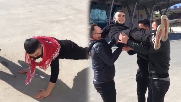 Zonguldak’ın Ereğli ilçesinde Gazeteci Muhammet Balaban’ın yeğeni Caner Şahin vatani görevini yerine getirmek için Van Erciş’ e yola çıktı. Otobüs terminalinde duygusal anlar yaşanırken, Caner Şahin’in arkadaşları Caner’i önce havaya attı, ardından da ilk şınavını çektirdiler.