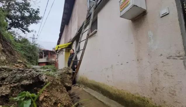 Zonguldak'ta heyelan nedeniyle istinat duvarının yıkılması sonucu evlerinin önündeki yaya yolu kapanan Yavuz ailesi, 5 aydır yolun açılmasını bekliyor.