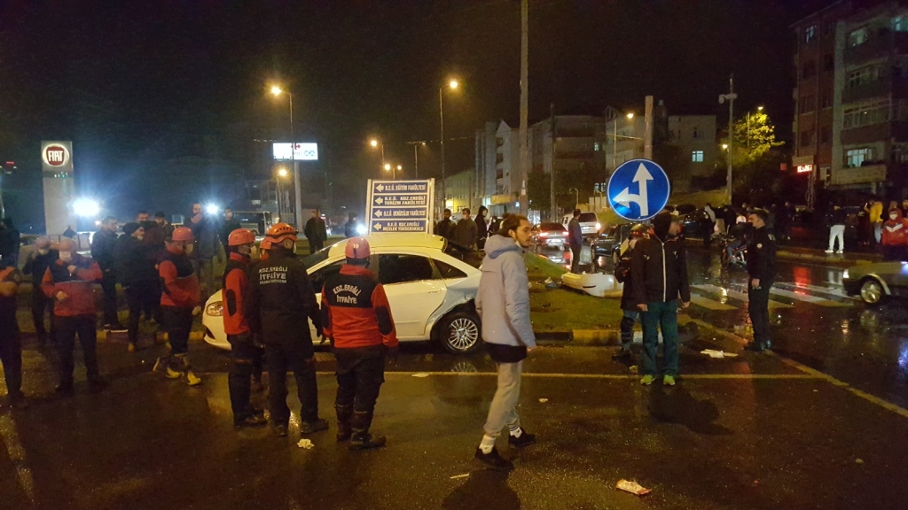 Kaza saat 21.30 sularında Ereğli Devrek yolu Cevizler kavşağında meydana geldi. İddiaya göre Bora A.nın (28) kullandığı 67 ABL 379 plakalı otomobil ile Enes S.K. (21) kullandığı 67 AAU 901 plakalı otomobille çarpıştı. Kazada Boa A. nın kullandığı otomobilde yolcu olarak bulunan Harun Y.araçtan fırlayarak yola düştü. Harun Y. olay yerine gelen sağlık ekiplerinin ilk müdahalesinin ardından Devlet hastanesine kaldırıldı. Kazada yaralanan sürücü Enes S.K. ile Enes S.K. nin aracında bulunan Burak T. ise Ereğli devlet ve Echomar hastanesine kaldırıldı. Yaralıların sağlık durumlarının iyi olduğu öğrenildi. 67 ABL 379 plakalı otomobil sürücüsü Bora A. nın kontrol amaçlı Özel Echomar hastanesine kaldırılırken, Bora A. nın sağlık durumunun iyi olduğu ve hastaneden taburcu edildiği öğrenildi. Kazda hurdaya dönen araçlar ise çekici vasıtası ile kaza yerinden kaldırıldı. Kazada Enes S.K. nin yapılan alkol testinde 224 promil alkollü olduğu öğrenildi. Trafiğe kapanan yol araçların kaldırılması ile birlikte yeniden trafiğe açıldı. Kaza ile ilgili soruşturma başlatıldı.