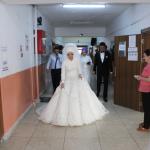Gelin Gamze Atay ise arabaya binmeden önce yaptığı konuşmasında “Oyumuzu kullandık. Şimdi düğünümüze gidiyoruz. Vatana millete hayırlı olsun inşallah” dedi.