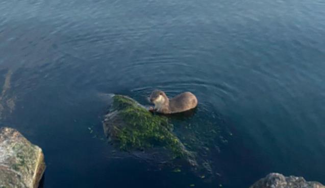 Bir başka vatandaşın objektifine yakalanan su samuru ise denizde tuttuğu balığı yerken görüntülendi.