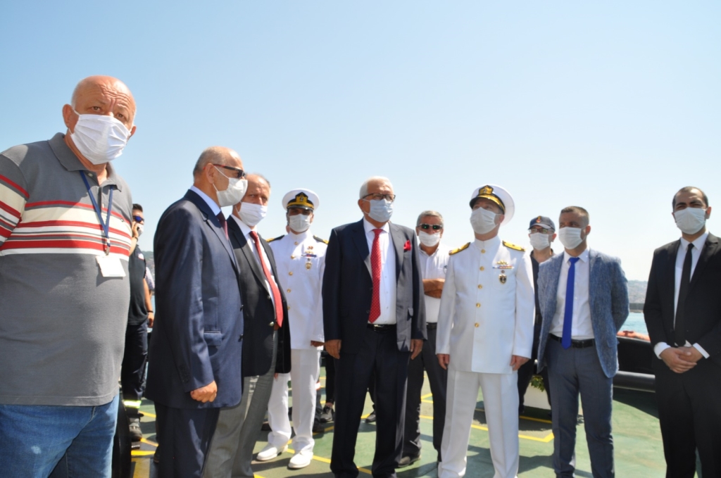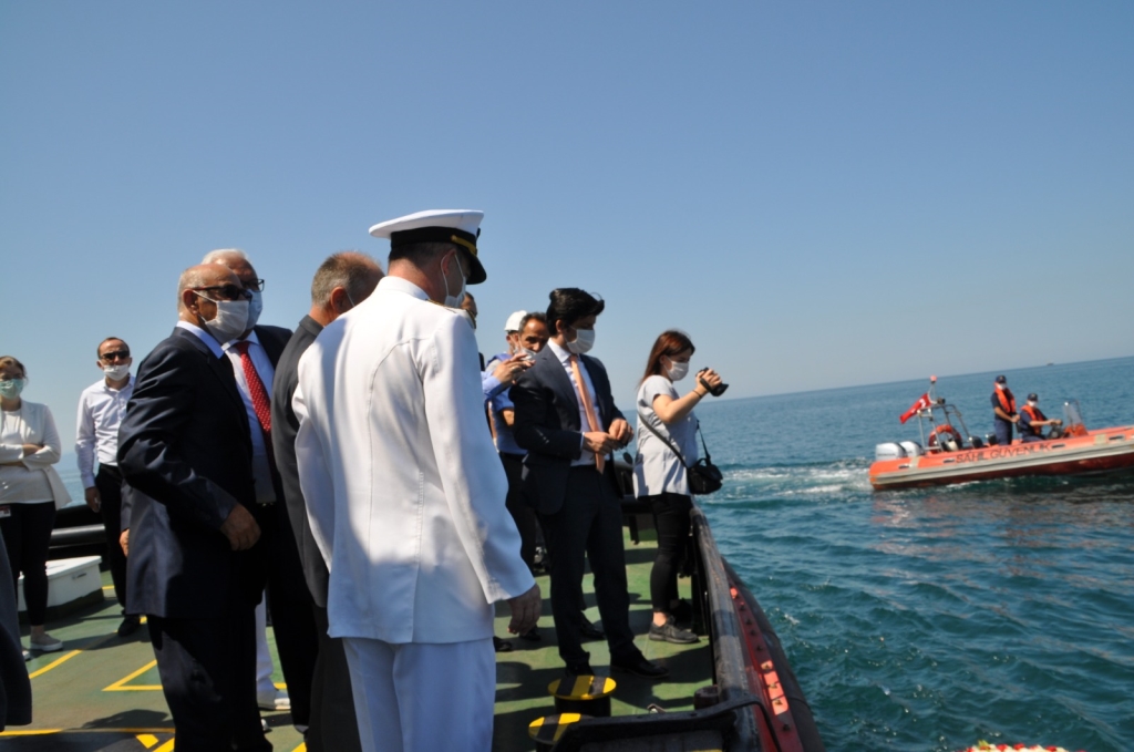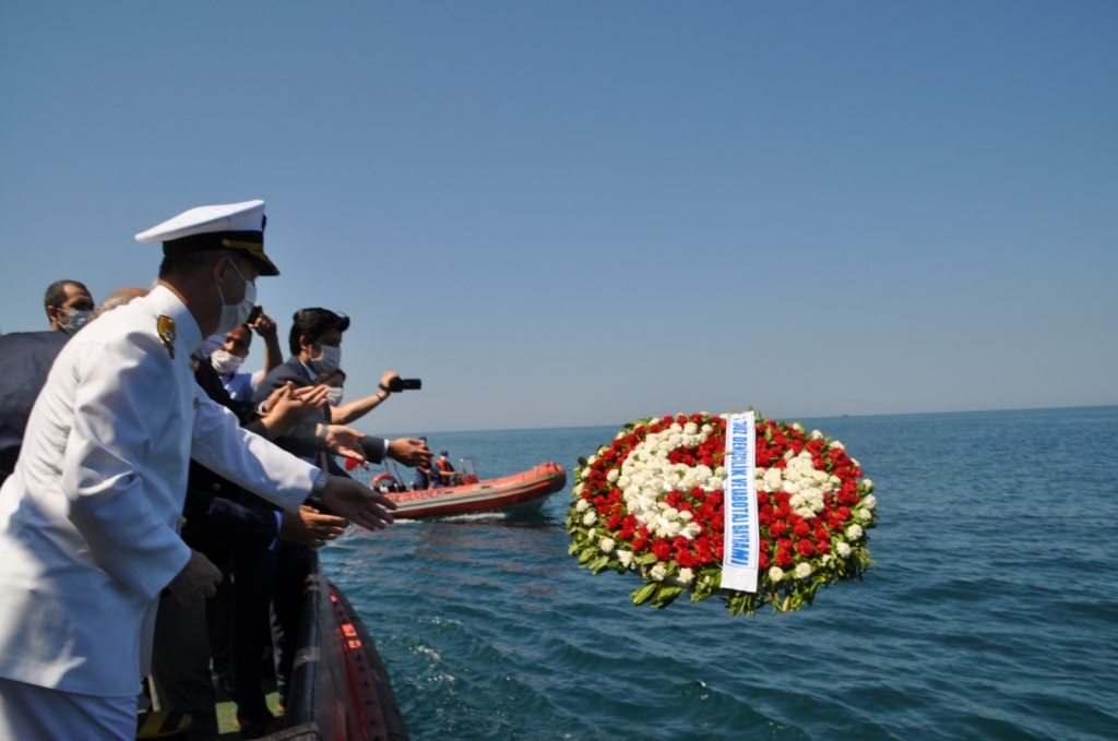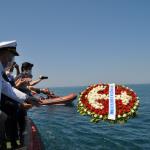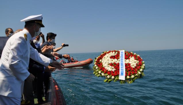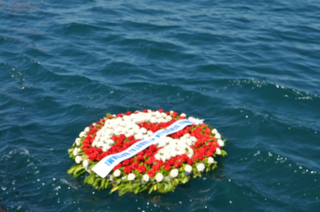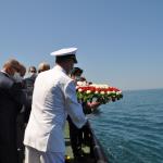 Törenin ardından, protokol heyeti deniz şehitleri anısına römorkör ile açılarak denize çelenk bıraktı.