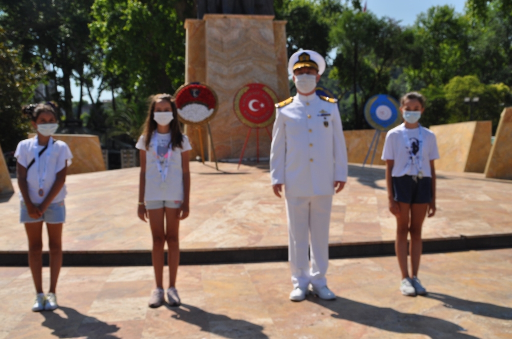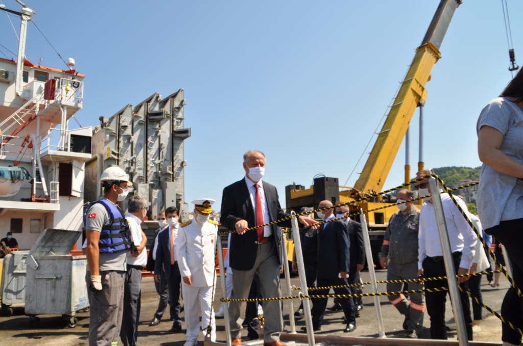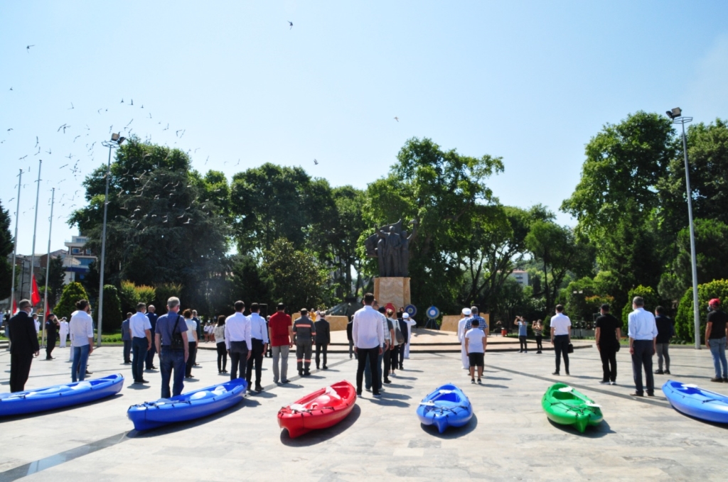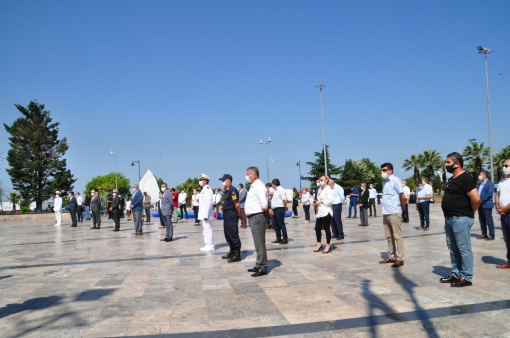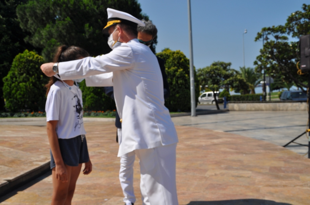 Törenin ardından, protokol heyeti deniz şehitleri anısına römorkör ile açılarak denize çelenk bıraktı.