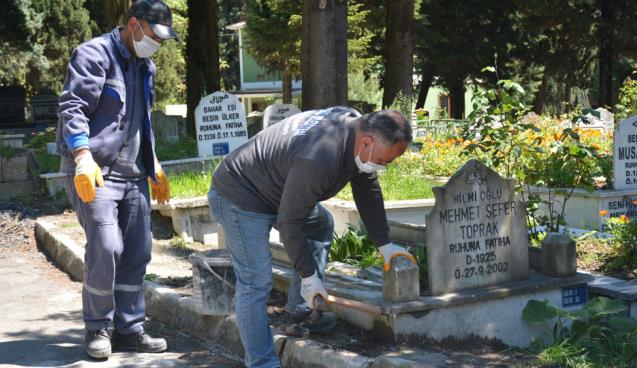 Koronavirüs salgınıyla mücadelede seferber olan Kdz. Ereğli Belediyesi, salgın nedeniyle evde kalarak yakınlarının kabirlerini ziyaret edemeyen vatandaşlar için mezarlarda bakım-onarım çalışması başlattı.