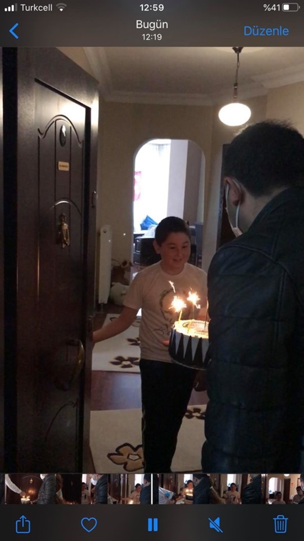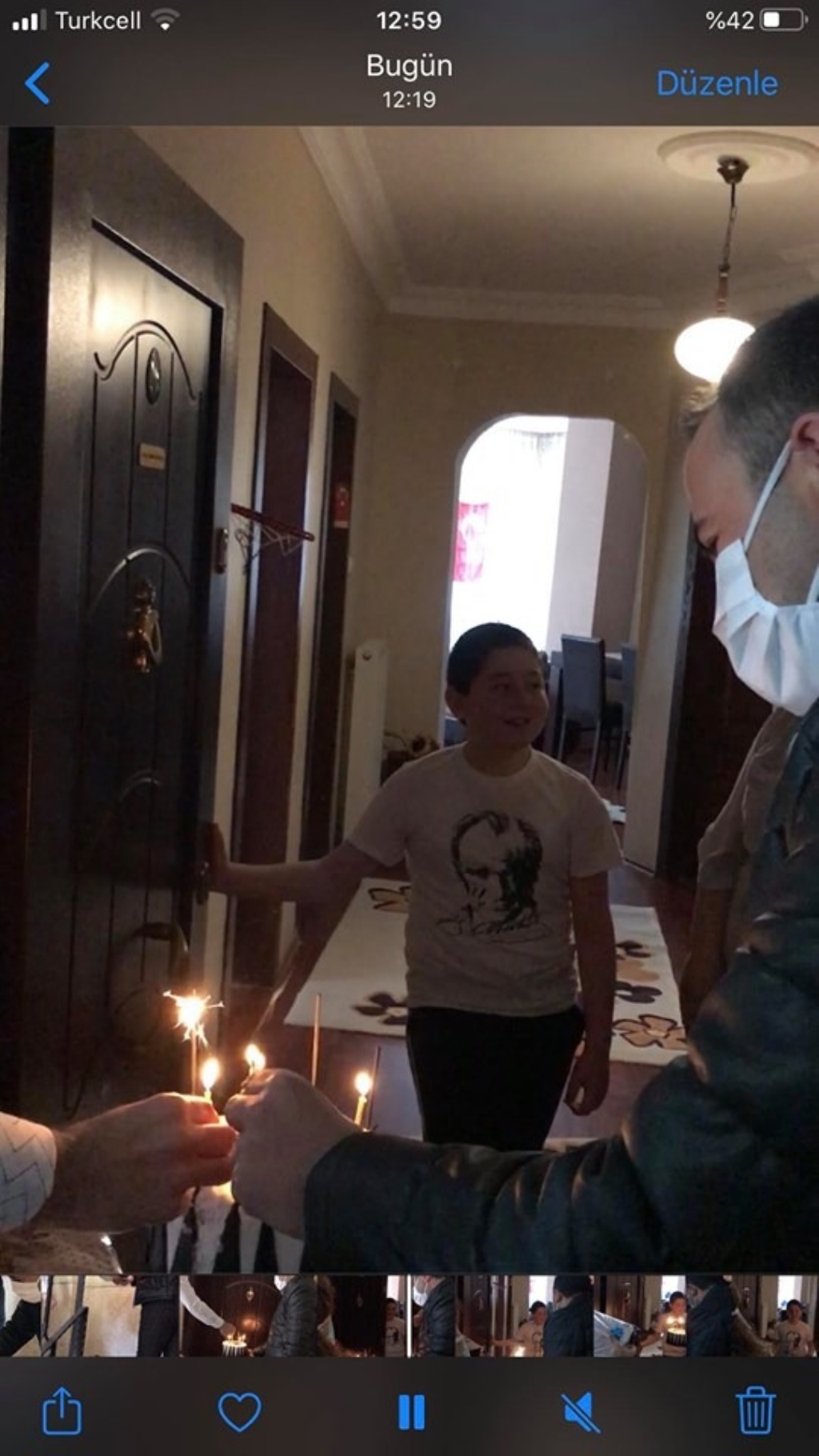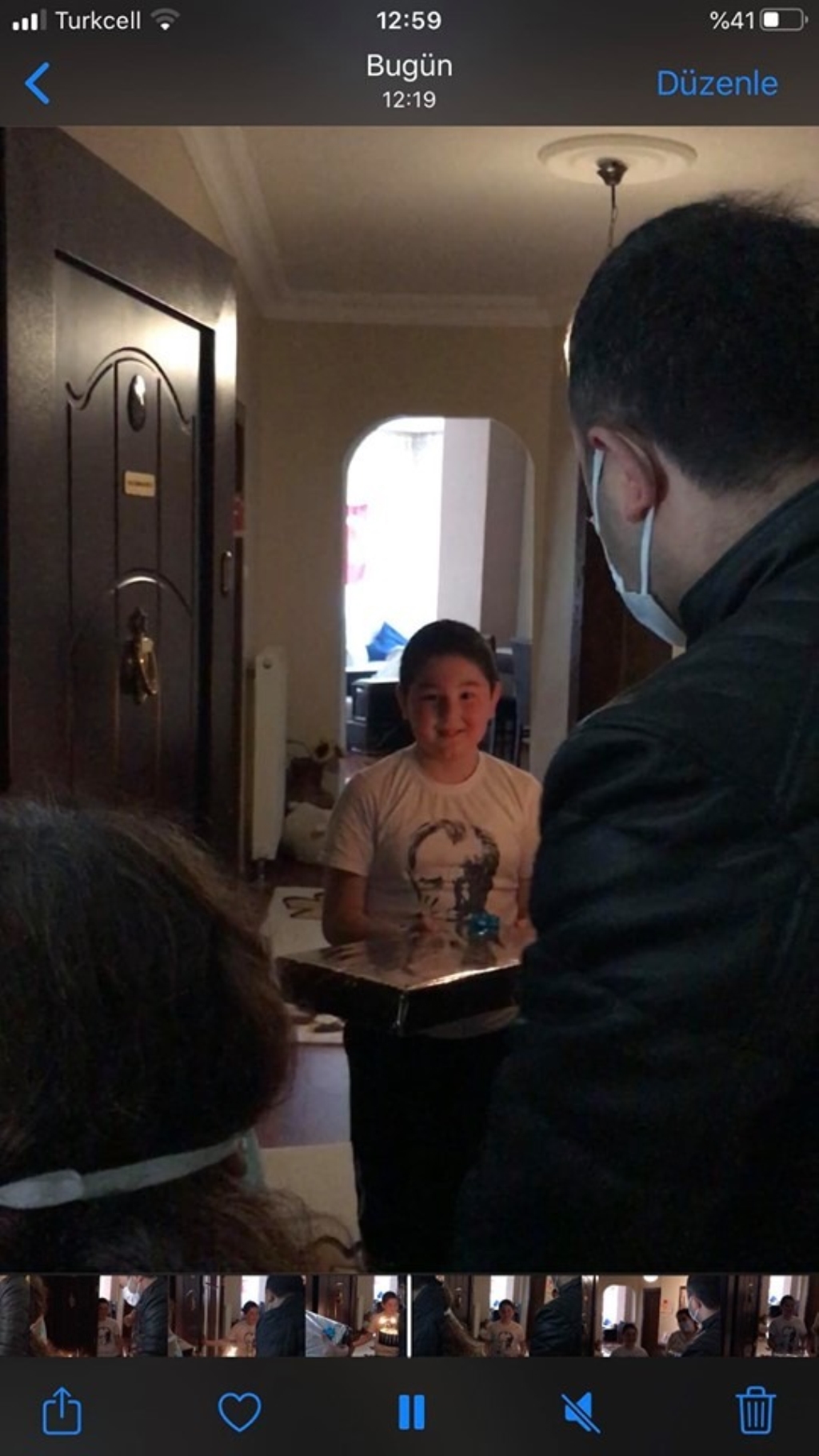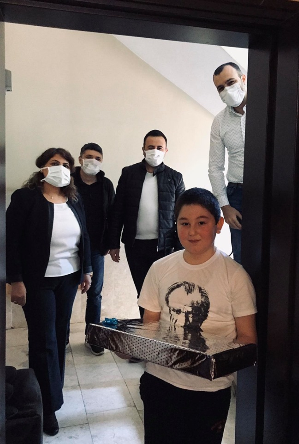 Şaşkınlığını gizleyemeyen Ali Arıkan, doğum günü pastası ve hediyesini bu anlamlı günde öğretmenlerinden aldı. Okul Müdürü Tuncay Uzun yaptığı açıklamada: “Sayın kaymakamımız İsmail Çorumluoğlu’nun 23 Nisan’da doğan öğrencilerimizin doğum günlerinin bu anlamlı günde çeşitli etkinliklerle kutlanabileceğini belirtmeleriyle beraber harekete geçerek okulumuzda doğum günü 23 Nisan olan öğrencimiz Ali Arıkan’ın ailesiyle iletişime geçtik. Öğrencimize sürpriz bir doğum günü etkinliği yapmak istediğimizi, sokağa çıkma tedbirinin uygulandığı bu günde Sayın kaymakamımızın izinleriyle doğum günü pastasını evine getirmek istediğimizi söyledik. Ailemizin davetiyle de etkinliğimizi gerçekleştirdik. Bu anlamlı günde öğrencilerimizi unutmayarak etkinliği yapmamıza izin veren Sayın Kaymakamımıza, ilçe milli eğitim müdürlüğü yetkililerimize, idareci arkadaşlarıma, öğretmenimize ve bizlere yardımcı olan öğrencimizin ailesine teşekkür ederim. Ali’ye seneye arkadaşları ile kucaklaşarak kutlayacağı bir doğum günü dilerken, Tüm çocuklarımızın 23 Nisan Ulusal Egemenlik ve Çocuk Bayramını kutlarım.” dedi.
