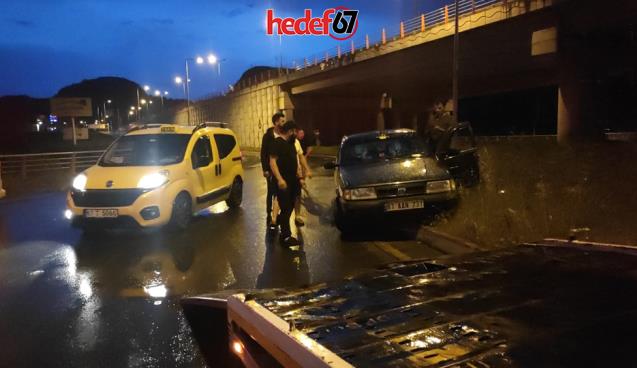 Kaza, akşam saatlerinde Ören Mahallesi hastane kavşağında meydana geldi. İddiaya göre, seyir halindeki İ.D. idaresindeki 81 AAN 731 plakalı otomobil yağışlı hava nedeniyle direksiyon hakimiyetini kaybederek orta Refüje çıktı. Kazada şans eseri yaralanan olmazken maddi hasar meydana geldi. Çekici yardımıyla otomobil bulunduğu yerden kaldırıldı.