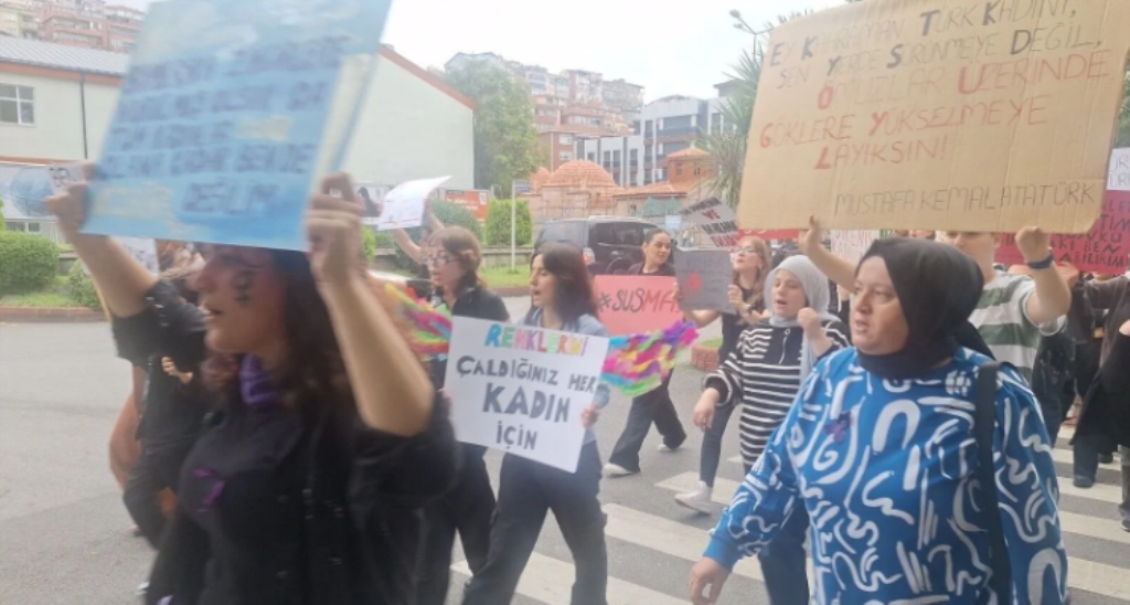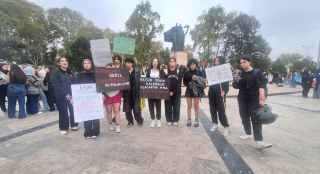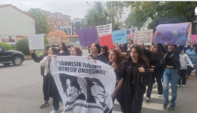 Bu arada, öğrenciler, yürüyüş sırasında öne çıkan slogan olan “Kızını koruma oğlunu eğit” sloganını attılar.