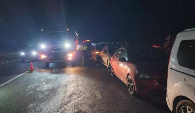 Düzce’de Anadolu Otoyolu’nda meydana gelen 10 aracın karıştığı 2 farklı zincirleme trafik kazasında, 8 kişi yaralandı.
