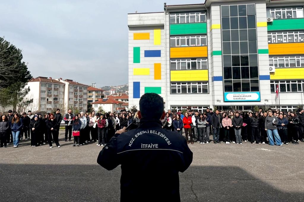 Karadeniz Ereğli Belediyesi, 1–7 Mart Deprem Haftası kapsamında düzenlediği eğitim ve tatbikatlarla öğrencileri deprem konusunda bilinçlendirmeye devam ediyor. Kdz. Ereğli Belediyesi İtfaiye Müdürlüğü ekipleri tarafından gerçekleştirilen çalışmalar kapsamında ilçedeki okullarda seminerler ve tahliye tatbikatları düzenlendi.