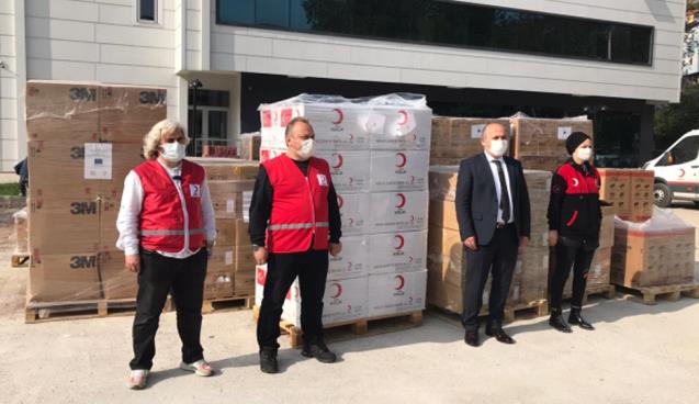 Zonguldak Kanbağışı Merkezinde yapılan yardım kolilerinde, koruyucu gözlük, maske, eldiven ve koruyucu elbise gibi koruyucu sağlık ekipmanlarından oluşan 150 bin adet sağlık malzemesi, Türk Kızılayı tarafından Zonguldak İl Sağlık müdürlüğü'ne teslim edildi.