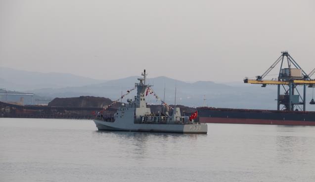 Zonguldak’ın Ereğli ilçesi Karadeniz Bölge Ve Garnizon Komutanlığı’nda TCG Kılıç Hücumbotunda 19 Mayıs Atatürk’ü anma Gençlik ve Spor Bayramı kapsamında 19.19’da İstiklal marşı okundu.