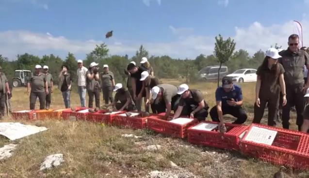 Kastamonu'da yaban hayatını desteklemek ve doğal dengeyi korumak amacıyla 2 bin 100 kınalı keklik doğaya salındı.