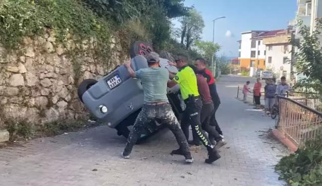 Olay, saat 16.00 sıralarında Bahçelievler Mahallesi Mehtap Sokak'ta meydana geldi. Azime E., yeni aldığı elektrikli otomobilini evinin önünde yokuşa park etmek istedi. Azime E.'nin hakimiyetini kaybettiği otomobil, çimenlikten yuvarlanarak 2 metre yükseklikten alt yola takla atarak düştü. Çevredekilerin ihbarıyla olay yerine polis, itfaiye ve sağlık ekipleri sevk edildi. Otomobilden çıkarılan Azime E., yapılan müdahalenin ardından tedbir amaçlı Atatürk Devlet Hastanesi'ne kaldırıldı. Azime E.'nin durumunun iyi olduğu belirtilirken, devrilen otomobil kaldırılarak yolun kenarına park edildi.
