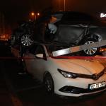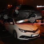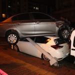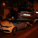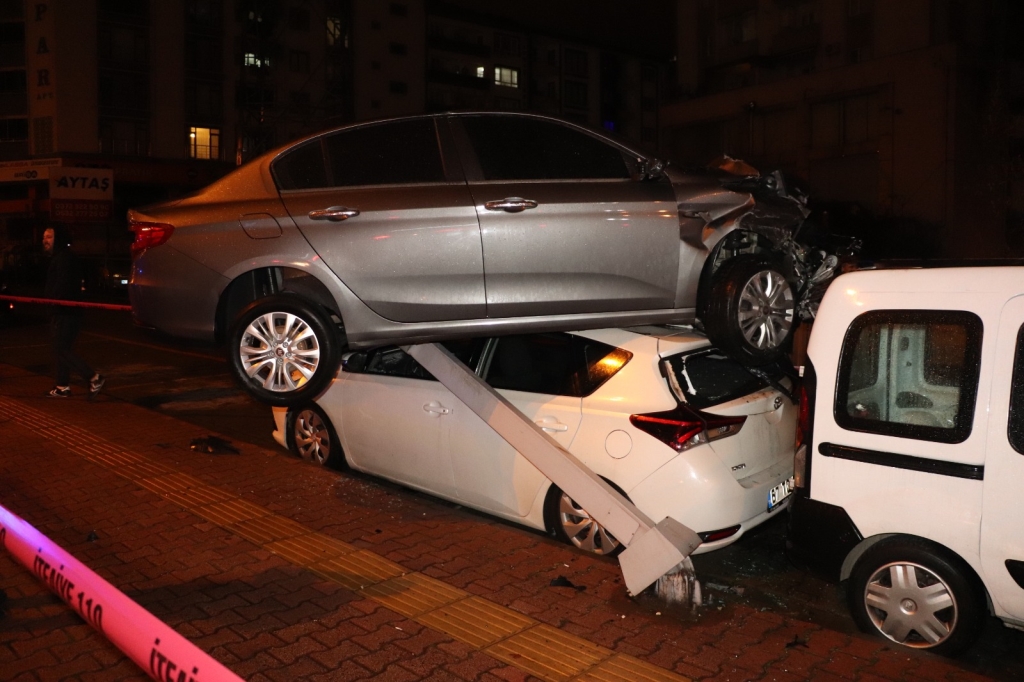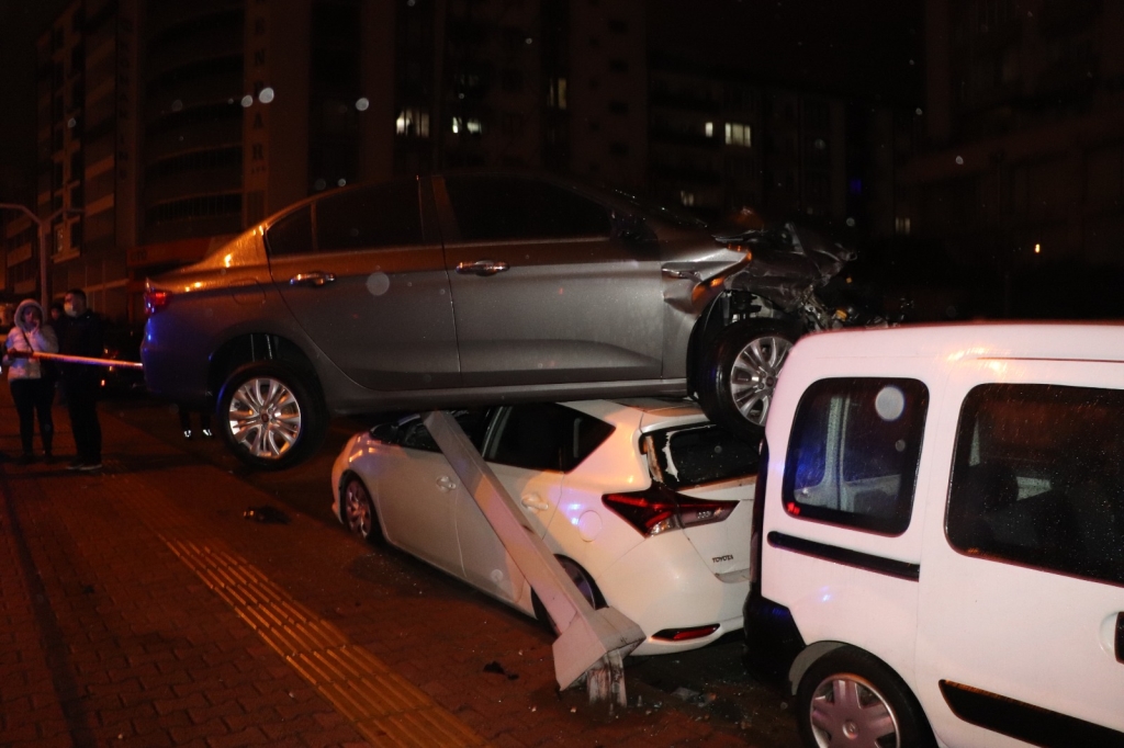 Zonguldak’ın Ereğli ilçesinde sürücüsünün direksiyon hâkimiyetini kaybettiği otomobil 3 araca çarptıktan sonra dördüncü aracın tavanına çıkarak durdu. Kazada yaralanan olmazken, kazayı yaptığı iddia edilen sürücü olay yerinden kaçtı. Savaş alanına dönen kaza yerine gelen araç sahipleri gördüklerine inanamadı.