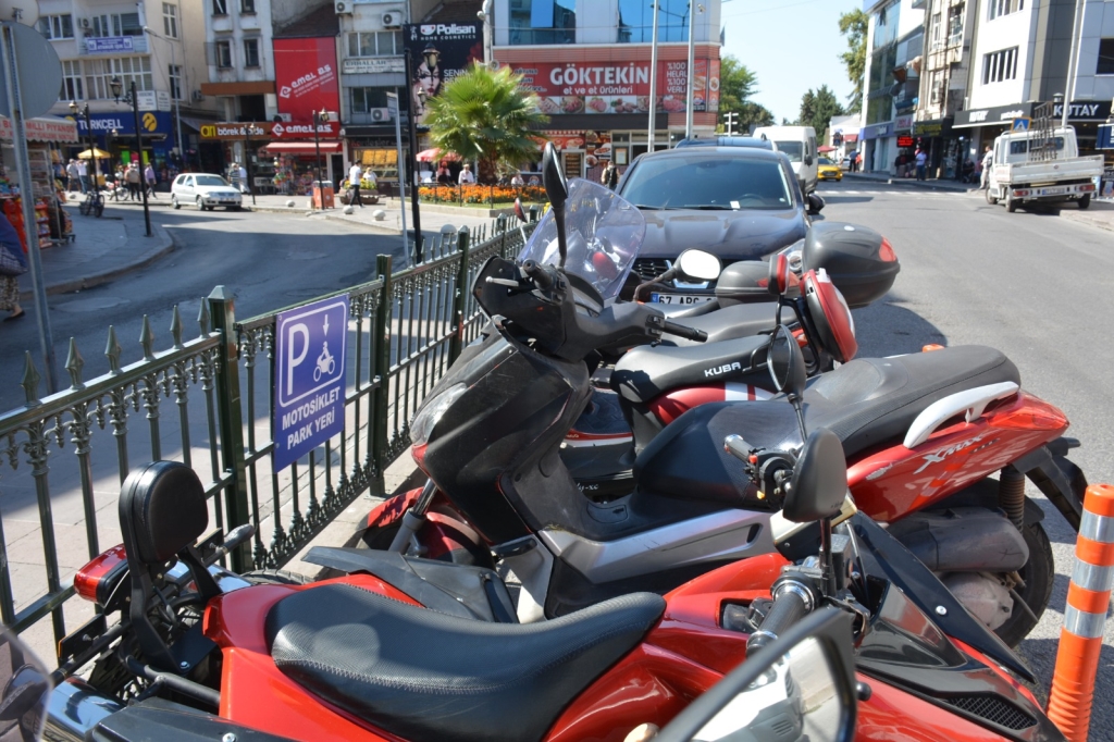 Motosiklet sürücüleri kendileri için ayrılan alanlarda hafta sonundan itibaren motosikletlerini park etmeye başladılar.