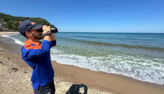 EKİPLER KUMSALDA DÜRBÜNLE DENİZ ÜZERİNİ İZLEDİ