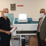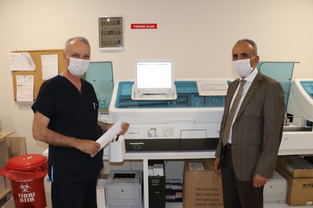 Çimenoğlu açıklamasında “Arka tarafımızda görmüş olduğunuz laboratuvarımızda kullandığımız bu cihaz Koronavirüs ile ilgili kandan hızlı testi yaptığımız cihazımız. Bilindiği üzere bu Koronavirüs Pandemisi çok hızlı şekilde yayılmakta. Laboratuvar açısından iki şekilde teşhisini koyabilmekteyiz. Birincisi boğazdan ve burundan alınan örneklerle yapılıyor. Alınan örnekler laboratuvara gönderiliyor. PCR testi dediğimiz test. Bir diğeri ise kandan baktığımız hızlı test var. Bu testle de Antikorlara bakıyoruz. PCR dediğimiz testin sonuçları en kısa 2 en uzun 5 olmakla beraber ortalama 3-4 günde çıkıyor. Ama bizim burada yaptığımız test 1 saatte sonuç veriyor. Sonuç negatif ya da pozitif olarak çıkıyor. Eğer sonuçlar pozitif çıkar ise hemen hastaya müdahale yapılıyor. Bizim hastanemizde enfeksiyon hastalıkları ya da göğüs hastalıkları ya da acil polikliniğine müracaat edildiği zaman o hastamızla ilgili Kovid hastalığı ile ilgili testi 1 saat içinde karşılaşıp karşılaşmadığınız anlaşılıyor”
