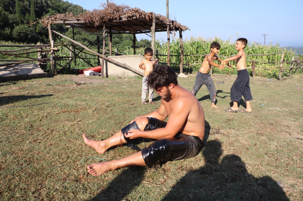 Yağlı güreş sporcusu olan torunlarını ve mahalleli gençleri kendisine ait bahçesinde hazırladığı alanda antrenman yaptıran Bayram Yılmaz, sporcuları müsabakalara kendi imkanları ile götürüp getirmeye çalışıyor. Kimi zaman bankadan kredi çeken Bayram Yılmaz, kimi zaman da kendisine sponsor olan firma sahiplerinin desteği ile müsabakalara gidiyor.