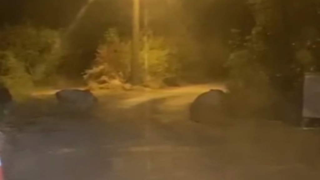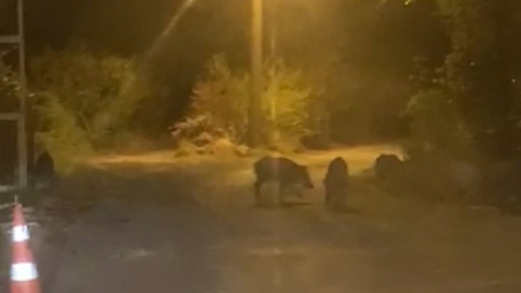 Zonguldak’ın Ereğli ilçesine bağlı Bağlık Mahallesinde aç kalan domuzlar mahalleye indi. O anlar cep telefonu ile görüntülendi.