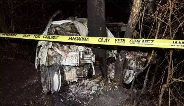 Ağaca çarptı... Kaza yaptığı aracında yanarak...
