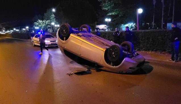 Zonguldak’ın Ereğli İlçesinde alkollü sürücünün kullandığı otomobil park halindeki otomobile çarparak takla attı.