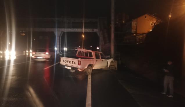 Alkollü sürücü Beton direğe çarptı...1 yaralı...
