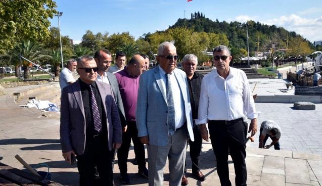 Belediye Başkanı Halil Posbıyık, 19 Kasım 2023’de yaşanan büyük felakette zarar gören sahilin Amfi Tiyatro bölgesinde karaya oturan Pallada yük gemisinin son parçaları kaldırıldıktan sonra yenileme çalışmalarına başlanan Amfi Tiyatro’da incelemelerde bulundu.